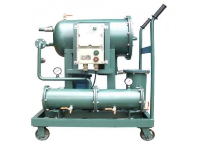 适用于石油、石化、煤矿、冶金、电厂等易燃易爆环境下使用而设计的滤油机,其中电机、电磁启动器采用防爆型。广泛适用于含水量高的轻质油及燃油,集精密过滤及除水两种功能为一体,应用 “聚结分离”技术进行除水。除水快、能力强,尤其对油液中大量的水进行分离,具有真空法、离心法的优点,可破除介质中全部的油水乳化结构;通过颗粒过滤系统的过滤,可将介质的清洁度稳定的控制在系统要求状态,以保证油液的清洁度,不改变油液的物理、化学元素,延长油液的使用寿命,能耗小,运行费用低。系统配置优良,连续工作能力强,适合在线运行不需加热即可除去大量水分,除水速度快,可将一半油一半水的油分离出来,推车式设计,使用方便。